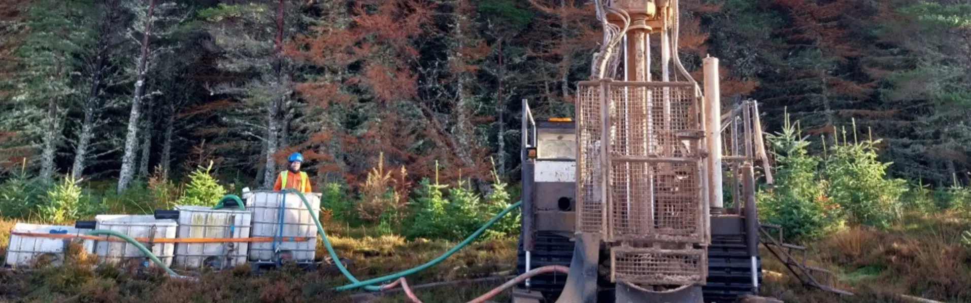 All cores were taken utilising a water flush medium. Clean water was taken from the nearby Loch Buidhe and transported by water truck to the site where it was then pumped to the rigs through 32mm alkathene pipe via geothermal loop winders. At the rigside, the water was then recirculated through a closed system.