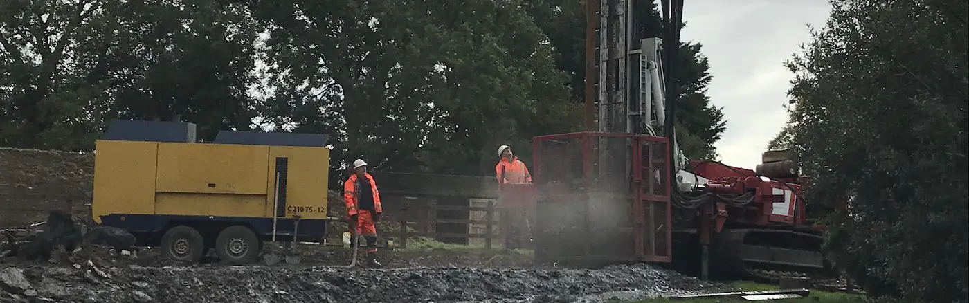 The drilling team, Chris and Ray, are battling difficult ground conditions on a daily basis, caused by the typically wet British weather!