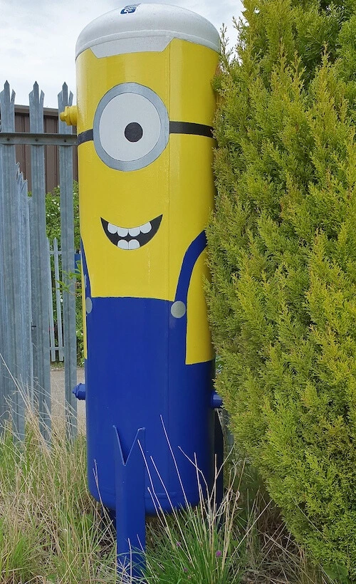 Oh well, that was one of those things that crept up quietly, painted in stolen lunch breaks and touched up with a bit of rogue welding here and there. The lab team had taken an old air vessel – usually just a workhorse piece of an air compressor – and transformed it into a life-sized minion, complete with little legs.